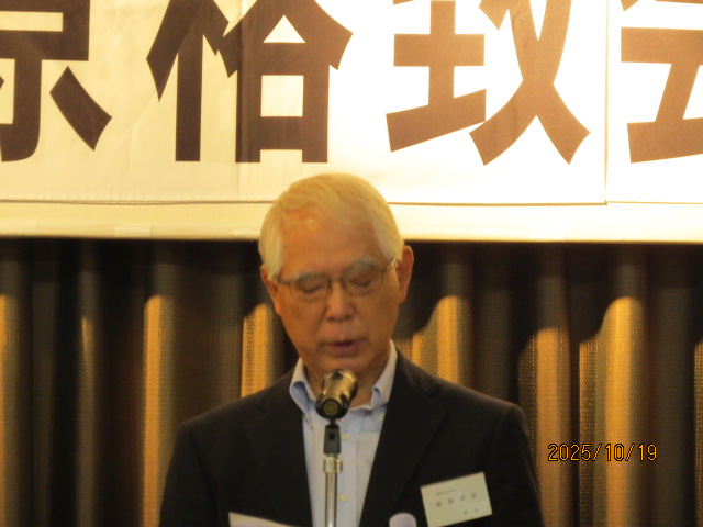 初めに、司会の本間ますみ事務局長(49年卒)より、この1年の間に事務局で把握できた11名の会員の訃報が報告され、黙祷をささげました。