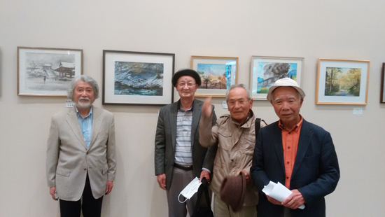 会場内には会員・会友・一般の入選作品が日本画・洋画・工芸と183作品が展示されていました。 新山さんの作品は「風渡る」のタイトルで上高地の梓川の清流を描いた水彩画20号の大作でした。鑑賞能力のない私ですが新春の芽吹き始めたカラマツの新芽が川の流れとともに見事に描かれていました。 洋画の出品総数が如何であったかは定かではありませんが、その中から選ばれて入選した洋画部門63作品の一角を見事に占め、しかも二年連続入選という輝かしいものでした。