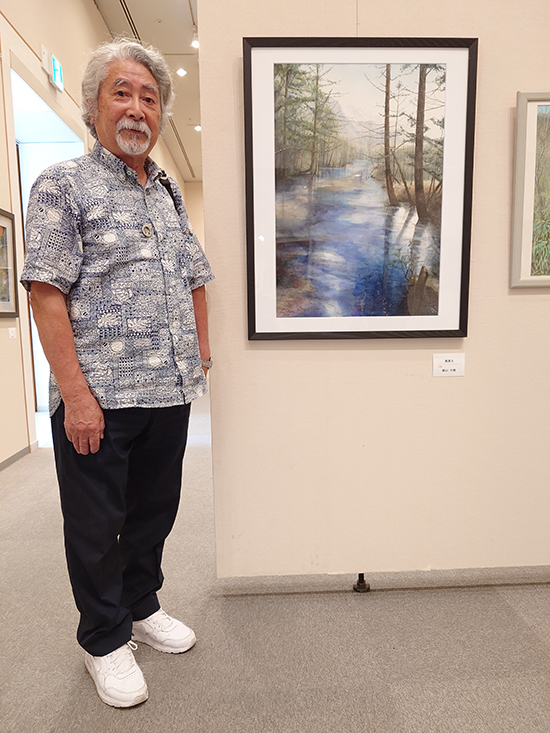 塾生の新山さんは絵画を趣味にされており、昨年6月より「鎌倉水彩画塾」に学ばれており、「早春の川辺」を出展されていました。