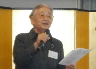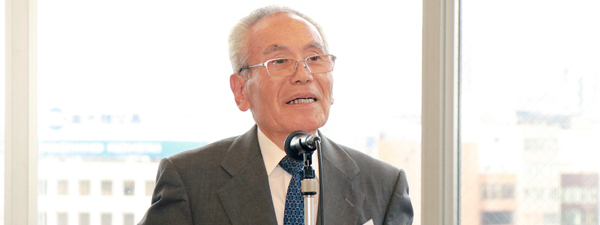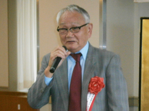 来賓で出席いただいた大竹美喜東京広島県人会・会長が急用で早めに退席されることもあり乾杯の音頭をお願いしました。