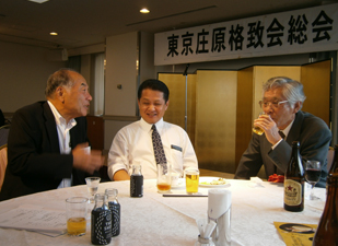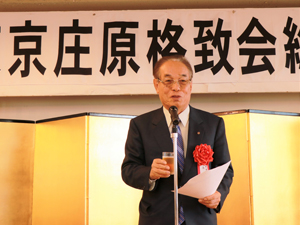 ビール・日本酒・焼酎・ワインなどで喉をうるおし、沢山用意された和洋食でお腹を満たしたころで、実業・東京支部 新井教亨副支部長、世羅・東京校友会 後藤峰登副会長から祝辞をいただきました。