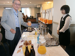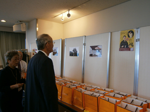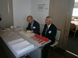 | 会場内の風景 | 受付する畑原さんと兼利顧問 |