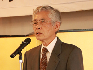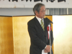 続いて2年ぶりに出席いただいた母校校長 今岡 護様から@2年前の創立120周年記念事業への御礼 A6年間の在籍中に懸案であった渡り廊下の設置・校舎の改築が出来たこと B今年度に開設した医療・教職コースに40人の定数を上回る応募があったこと C帰京された時には是非、母校に立ち寄って欲しい。同窓生に支えられていることが大変心強く感じられる との祝辞をいただきました。