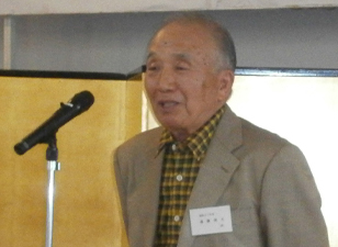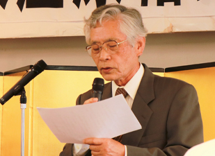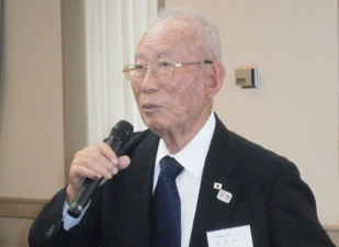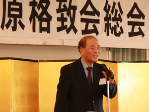 次に、母校同窓会 副会長の佐藤 勉様(34年卒)から祝辞をいただきました。佐藤副会長は長く母校の教師として学生の指導にあたってきたとの話をされた後で、@三日後の23日に昨年7月の西日本豪雨のために不通となっていた芸備線が全線復旧すること。 A会報27号を見て、素晴らしい活動と感じた。自分の経験から大変であろうと感じた。頑張って欲しい。 B120周年事業を総務として働き、同級生が多く、皆さんに支えられていることを実感等、祝辞を述べられました。