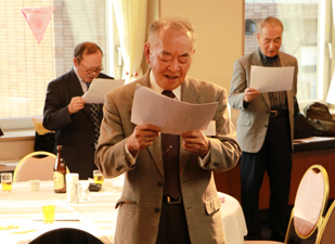 定刻12時から武廣 巌幹事長(48年卒)の司会で総会が始まりました。冒頭、この一年に事務局にご逝去の連絡をいただいた4人の方に黙祷を捧げ、次いで御来賓の皆様の紹介がされました。