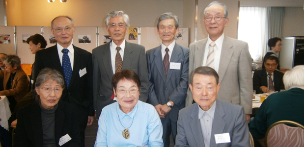 | 34年卒の皆さん(後列左から黒田・佐藤・迫田・香川、前列左から池田・近保・熊原) | |