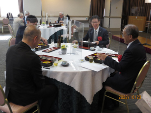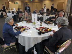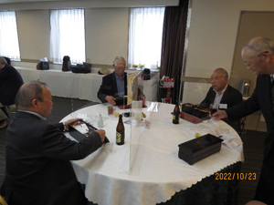 また、乾杯も杯を三回に分けて空ける方式、一回目は「家族への感謝」で乾杯、二回目は「三年ぶりの総会開催に」、三回目は「参会者の健康を願って」乾杯・杯を空けました。