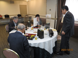 楽しい団らんの中で3時半の定刻を迎え、最年長(90歳)の室伏さんの発声で中締めとなりました。