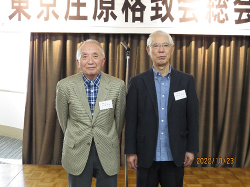 - 役員改選は、現役員の2年間の任期満了に伴うものでしたが立候補する方がなく、八谷現会長に三期目を務めていただくことになりました。副会長以下、現役員もそのまま留任し、原本政至氏(48年卒)を幹事に加えることで承認されました。顧問は会長が推薦することとなっているため(会則第9条)、後刻、会長から委嘱がなされました。(役員名簿は、当会HP「役員名簿」に掲載していますのでご覧ください。)