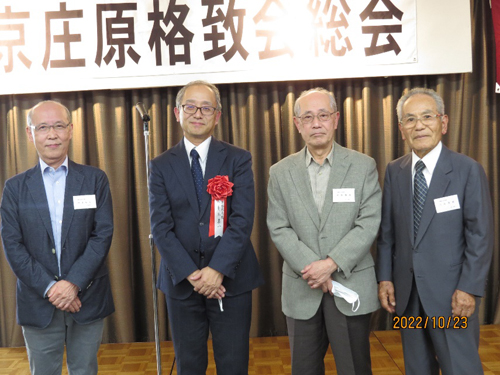 会員参加者は22名と例年の半分程度でしたが初参加の方や久しぶりに参加いただいた方もあり、母校の青本校長先生や近畿庄原格致会・徳永会長など来賓の皆さん8名を迎えて絆を強く結ぶ総会・懇親会となりました。