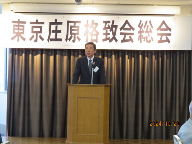 暑かった夏がいつまでも続いていた10月でしたが、突然涼しい秋風が吹き始めた20日(日)、四ツ谷駅前の主婦会館プラザエフにて「令和6年度 第42回東京庄原格致会総会・懇親会」が開催されました。庄原格致高校の畦知克利校長先生をはじめ庄原市企画振興部いちばんづくり課から2名、本校同窓会より2名、また庄原実業高校同窓会東京支部、世羅高校東京校友会より、合わせてご来賓・特別参加7名を迎え、会員の参加は31名でした。近畿同窓会は同日開催となったためお祝いのメッセージが届いています。