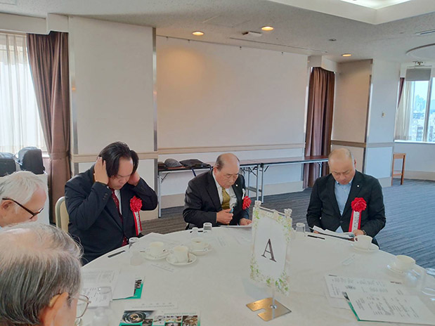 初めに、司会の武廣巌事務局長(48年卒)より、令和5年度に事務局で把握することができた9名の会員の方の訃報が報告され、黙祷をささげました。