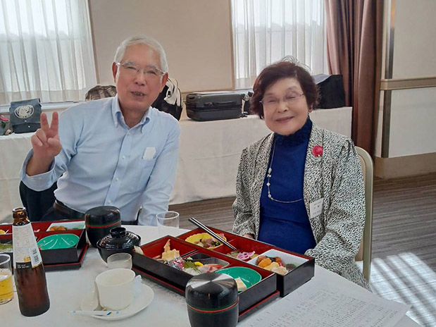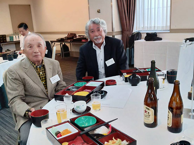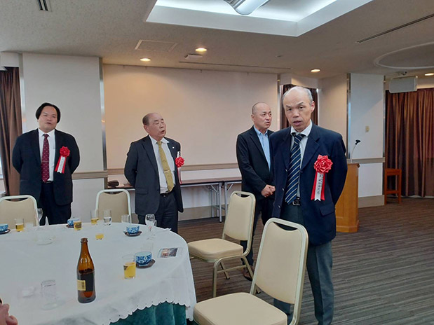 続いて八谷会長を議長に、議事に入りました。 令和5年度事業報告および決算報告を武廣事務局長が、会計監査報告を遠藤靖夫監事(37年卒)が行ない、それぞれ拍手で承認されました。 役員改選について、会則・規則に則って八谷会長から、新会長と新任5名を含む新役員体制(別表)が提案され、拍手で承認されました。 八谷会長は平成15年度から事務局長、幹事長を歴任され、長年の会長職を退任されるにあたってお礼の言葉とご挨拶がありました。 続いて、庄原から市長代理としてご参加の庄原市企画振興部いちばんづくり課の足羽幸宏課長と特別参加の武田悠作主任主事より「庄原市の関係人口創出の取り組み」と題するDVDをもとにさまざまな庄原の現状と課題、その取り組みと成果等、わかりやすい説明がありました。またこれ以上の内容が庄原市のHPで見られるとの紹介、庄原ファンクラブへの入会案内もありました。 総会の最後に、新会長に就任した武廣さんからご挨拶と、新規に役員に就任した5人について紹介がありました。